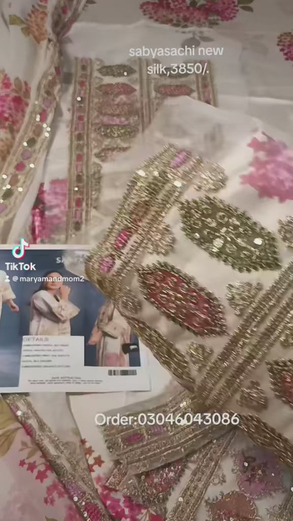 Sabyasachi Luxury Silk Off White Dress 3 Piece Dress